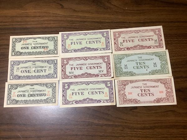 The Japanese Government (9) Misc. Banknote War WW2 Currency