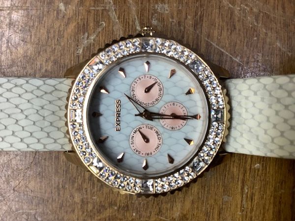 Express Womens Watch FMDEX1430 Leather Band Three Sub Dials