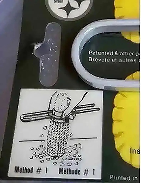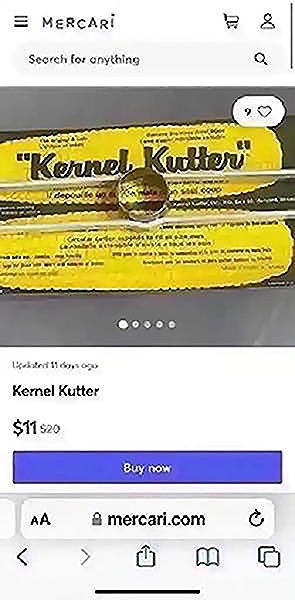 Strips kernels off ear of corn with one stroke! New from Williams-Sonoma! Great for making corn salads etc…$10 firm