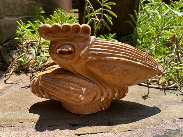 Decorative bird sculpture for garden or home decor. This (Pelican?) is a bit weathered but has life left in him. He seems to be made of ceramic and he’s pretty heavy. He could be painted, if you wish. Measures approx. 13” x 5” x 8”…$10 firm