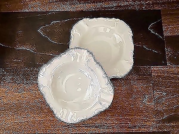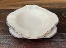 These small and dainty ashtrays were my grandmother’s. There are two available. White porcelain with gold painted rim. No chips or cracks. Measures about 3 3/4” square…$8 each or both for $15