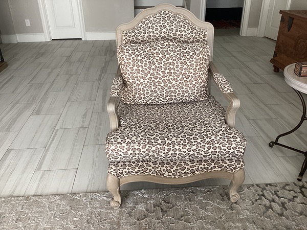 Leopard print bergere chair. Non-smoking, pet free home. In excellent condition. Local pickup only.