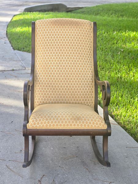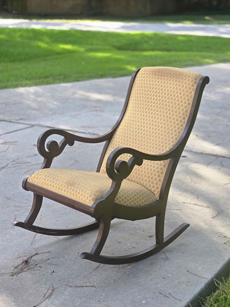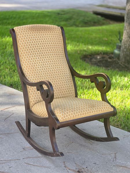 For sale is a beautiful antique rocking chair that is amazingly comfortable to sit and rock in. It does need to be reupholstered, but otherwise it is in amazing condition.