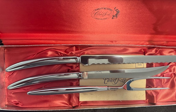 This is a vintage Carvel Hall carving set, likely from the mid-20th century, presented in its original box.