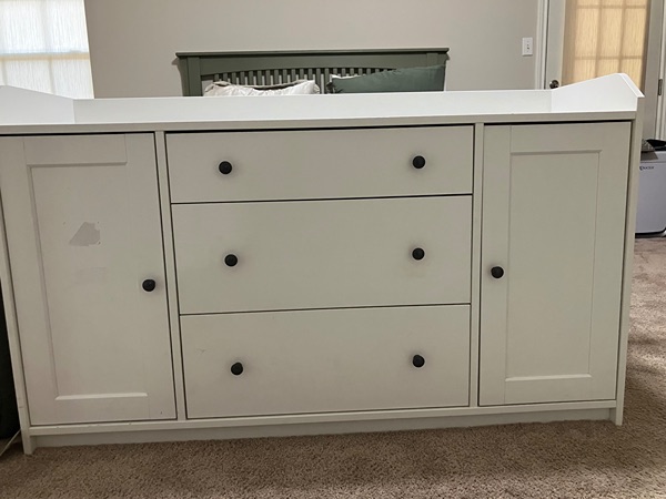 Ikea Hauga - used in kids room. Some ware that can be painted (see photos), but in great condition, asking $120. Measurements in one of the photos from ikea website. Stores a lot. Thanks