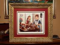 19 x 19 square with blue fabric matting and gold frame. The interior portion where the artwork will fit is 11” w, 10 1/2” l…$15 firm