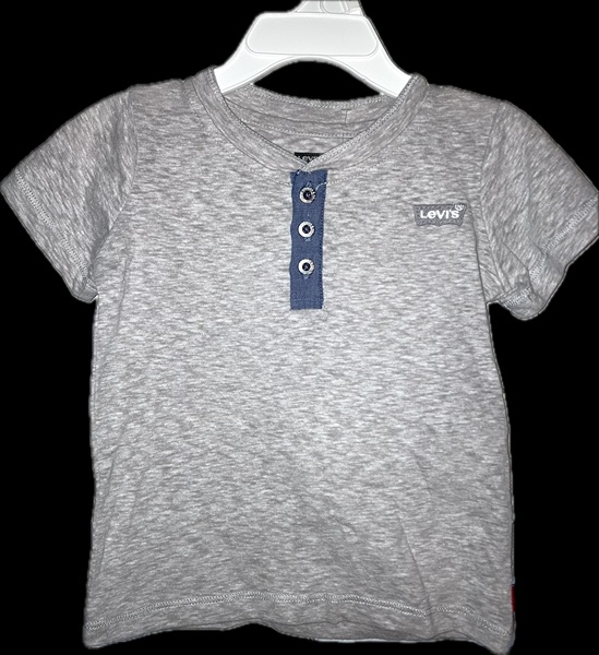 Levi's shirt, size 24 months in heather gray with blue 3-button neck and left chest logo. New with tags from smoke free home. $10