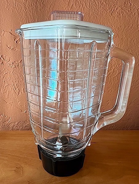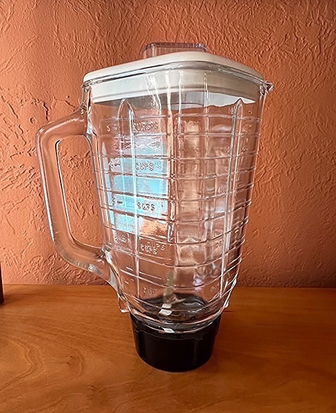 Replacement 5 cup glass blender jar with lid and base. I believe this is Oster brand…$15 firm