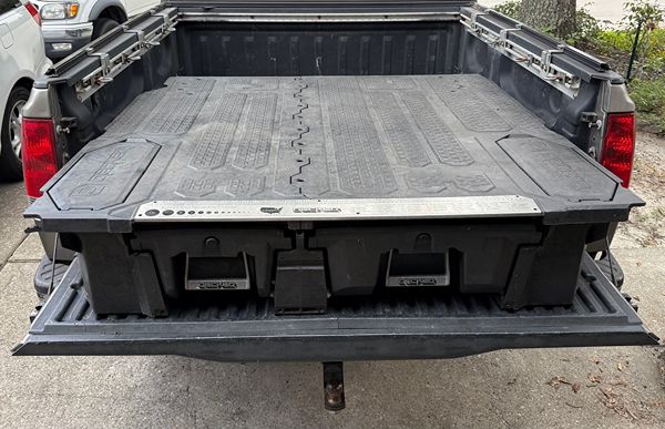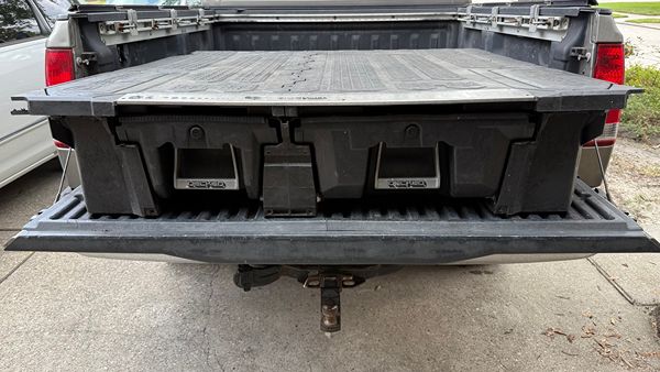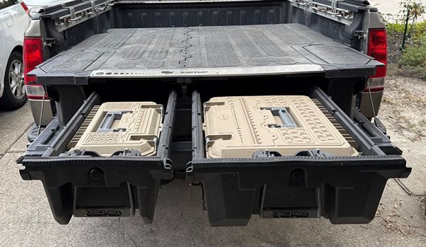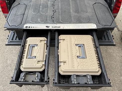 DECKED double drawer system for Jeep Gladiator. Partially asembled with all parts and two interior drawer storage boxes. Dimensions are 56"L x 57"W x 12-1/2"H. Buyer to verify fit for their vehicle or application prior to purchase.