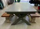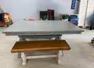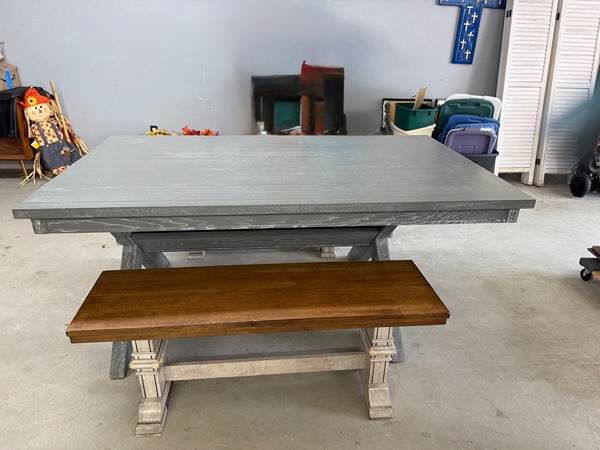 Gray table with two oak color benches