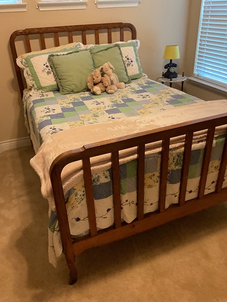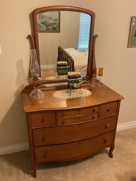 Solid golden oak antique full size bed and dresser. 100 + years old. Includes slightly used mattress.