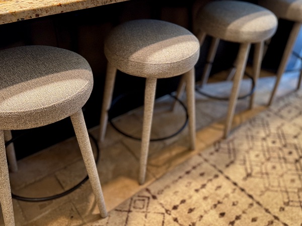 Four Fabric/Metal Round 26in Barstools Set of 4