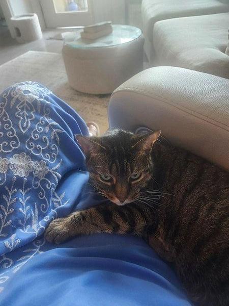 I am looking to rehome my tabby Cat. She is an inside cat not used to being outside and makes a wonderful pet. Her name is Allie and she is very friendly.