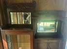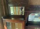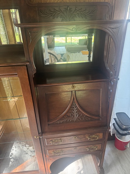 The additional angles highlight the hutch's storage capacity and the lower cabinet's paneled doors, reinforcing its functionality as a secretary desk. The wear appears superficial, but no significant damage (e.g., cracks or missing pieces) is evident. The dimensions seem consistent with a standard piece of this type, 6it tall and 4tt wide.
