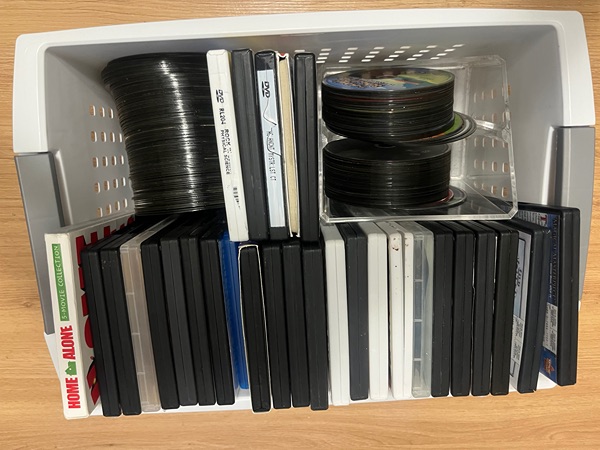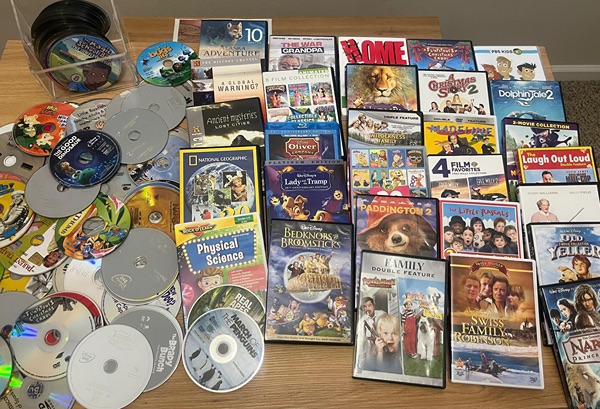 Around hundreds of kids dvd's and some classics and some educational. Some have cases, many do not.