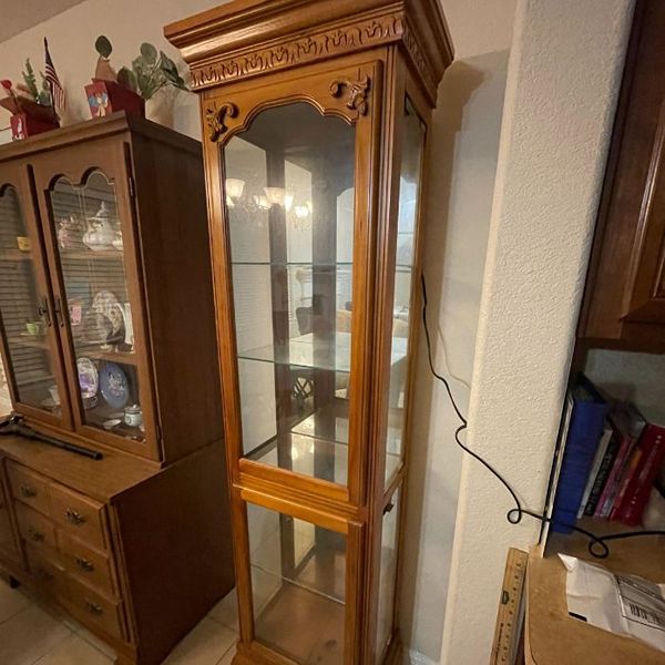 I am selling a used beautiful 6ft tall lighted curio cabinet with glass shelves for $99.