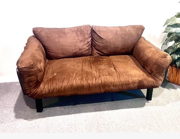 Brown suede futon with black frame. Great condition