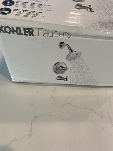 Polished chrome - new in box Kohler- bath/ shower set. Includes shower head, handle and faucet. Decluttering Cash or Venmo