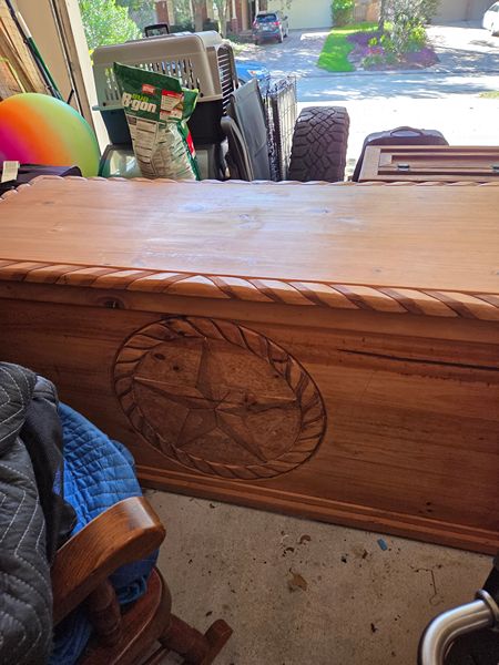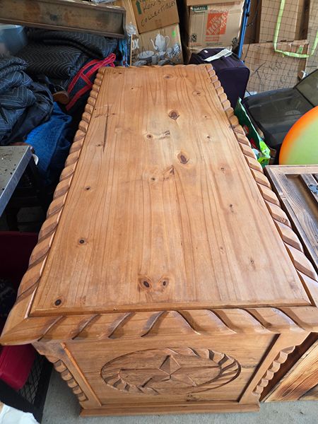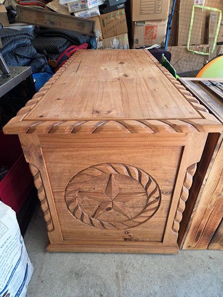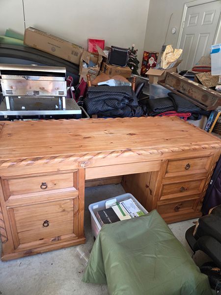 Hand carved Texas solid oak desk that also includes an oak cabinet for a printer as well.