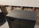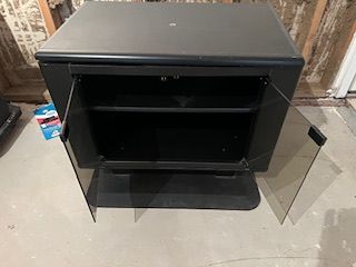 2 Glass doors with storage cabinet with 2 shelves for Cassetts, Movies, etc.