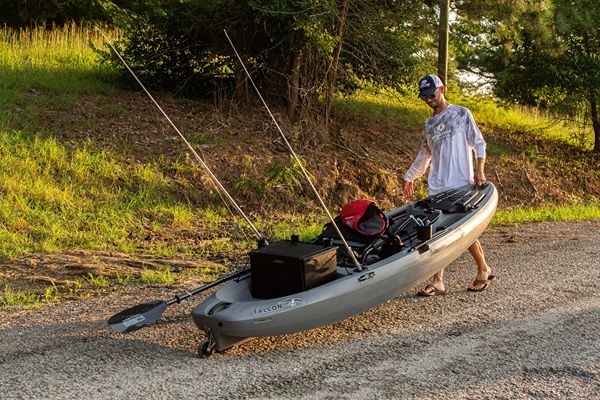 The Native Watercraft "Falcon 11" is a super stable, compact fishing machine. At 11' long and 32.5" wide, the Falcon 11 slides through the water with excellent tracking and ample stability. Super comfortable seat. Many more features appealing to fishermen are built in to this kayak. Built-In Roller Wheel for easy launching. Purchased new recently and used only a few times. Garage kept - so, like new condition.