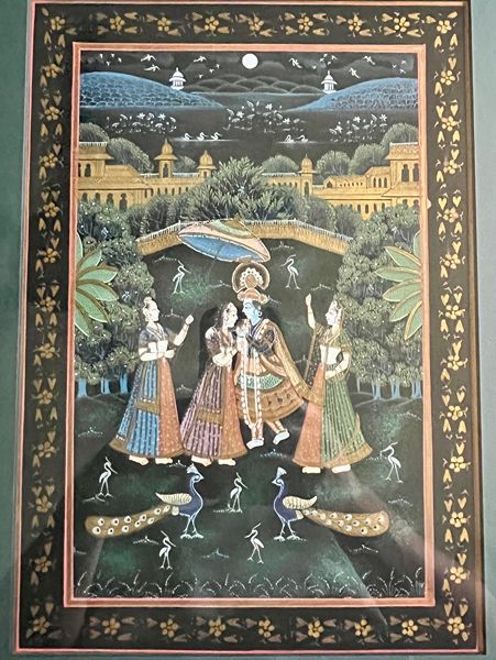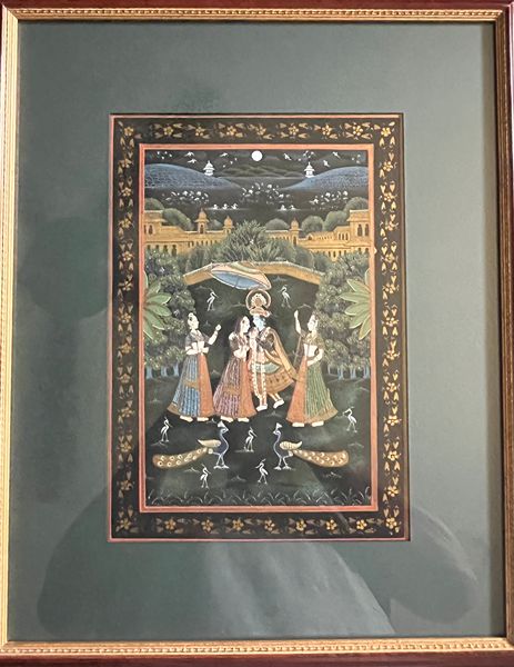 Beautiful framed silk hand painted art of Radha Krishna - Wedding Ceremony.