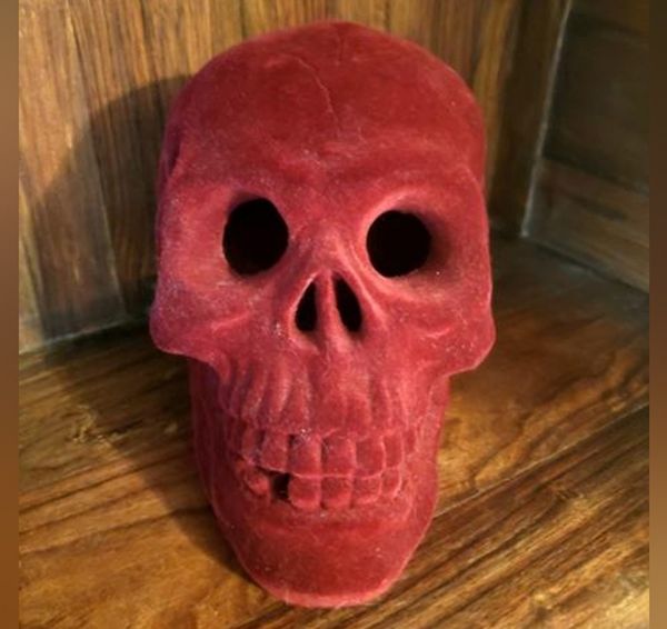 Velvet Maroon Skull Halloween Decoration
