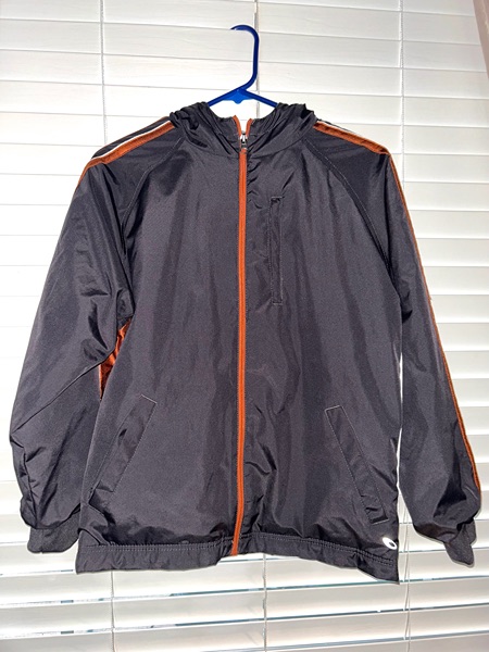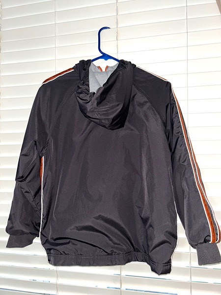 Tek Gear boys size large (14-16) full zip hooded jacket in brown with orange accents. Has 2 front pockets and 1 chest pocket. It's not reversible, just pictured that way so you can see the inside. It's in very good condition with little wear from smoke free home. $15