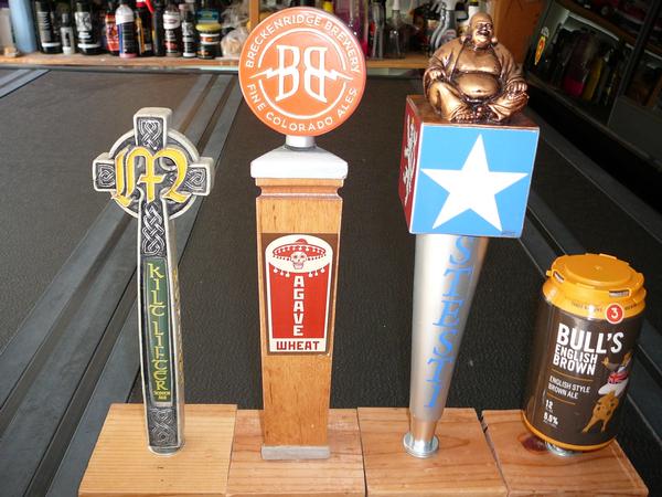 Selection of Brewery Tab Handles mounted on wood (Put them on your Bar)...... Jameson 11" tab SOLD............Adelbert's Brewery 10" Ceramic tap handle Austin Texas $10 ..................512 Brewery Wooden tap handle 11" Austin Texas $10 .................Independence Brewing Co. 13" Tap Handle Austin Texas $10 ............Breckenridge Colorado Brewery 12" Tap Handle $10 .................Stesti Brewery Tab Handle 11" Budda $10 ...................Moylan's Kilt Lifer Tab HandleSOLD 10" Scottish Ale $25 ..............Three's Nation Brewery Tab Handle Bull's English Brown Beer Can Carrolton Texas $10 ...Choice $10 each (Jameson tab is sold)...................832-6984432