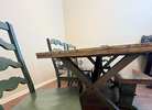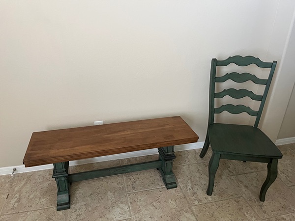 4 dining chairs and bench. Color is sage. Heavy and sturdy. Non-smoking home. Excellent condition Table NOT included