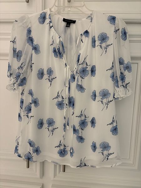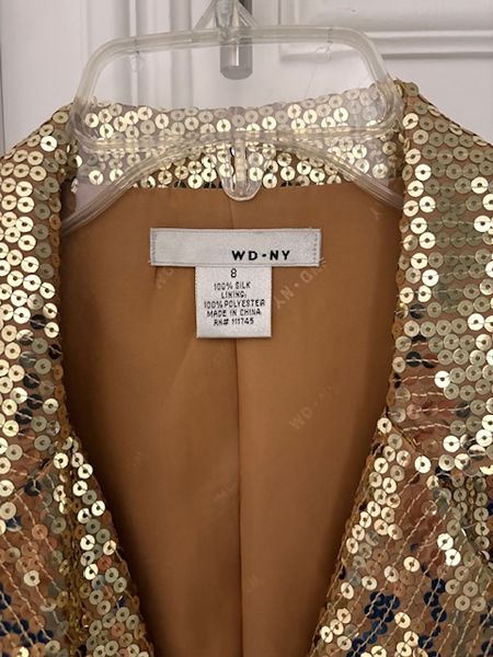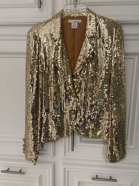 Ready for the holiday. Fully lined are Sequenced Jacket, worn once, Black Velvet Slacks, Short sleeve top blue/white, White Eyelet Skirt. never worn.  There are 11 pieces.  Medium size 8.