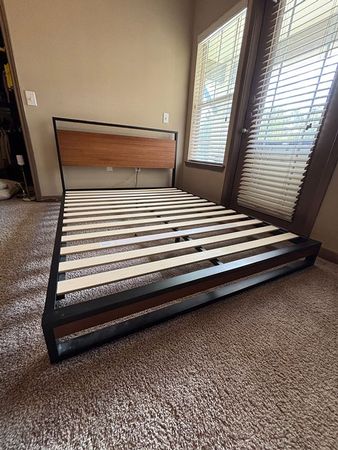 ZINUS Suzanne Bamboo and Metal Platform Bed Frame, 7-Inch Low Profile, Solid Steel Construction, No Box Spring Needed, Wood Slat Support, Easy Assembly, Chestnut Brown, Queen