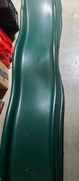 Bright green plastic wave slide designed for outdoor playsets. Durable, weather-resistant, and features a fun wavy design for a smooth, safe ride. Easily attaches to most wooden or metal swing sets—perfect for adding excitement to your backyard playground.