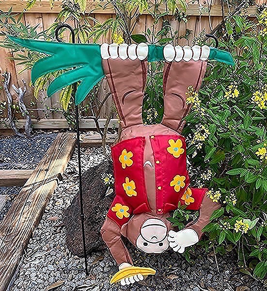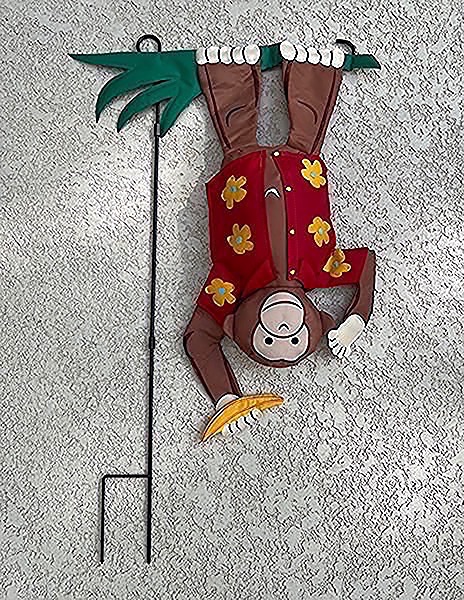 Inflatable Monkey was sold as a Garden Flag/Banner (no pole/hanger - pic for example only, has been kept inside, I only used it for a short time as playroom decor- also great for classroom or child bedroom wall decor.