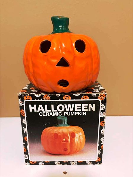 ORIGINAL VTG DAYTON HUDSON Ceramic PUMPKIN Jack-O-Lantern Candle Holder in Original Box 6" Height