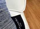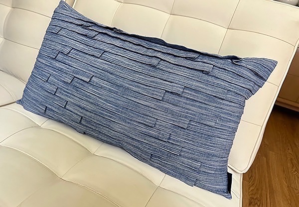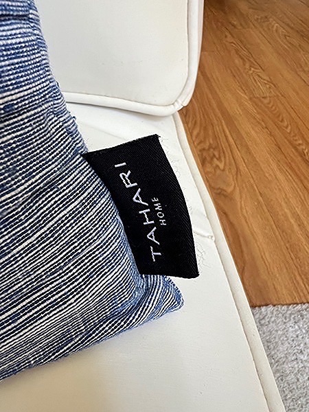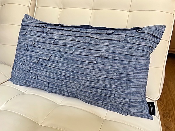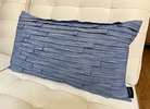 Gorgeous blue pillow by Tahari Home. The pillow cover has a unique, flat ruffle design pattern and is removable and machine washable on gentle wash. Pillow insert is down feather and fiberfill mix, making for a very comfortable and high-end look and feel...$30 firm