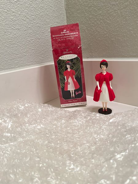 The Hallmark Keepsake Ornament "Silken Flame" Barbie Collector's Series #5 from 1998 is a beautifully crafted holiday-themed ornament featuring a Barbie doll. This collectible piece is part of a series of ornaments that were manufactured between 1990-1999, making it a valuable addition to any Barbie or holiday ornament collection.