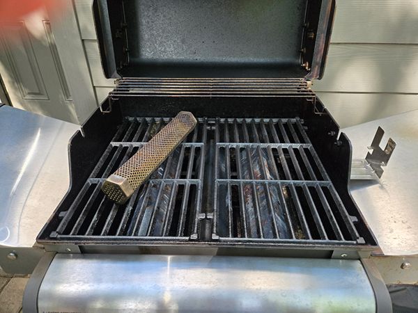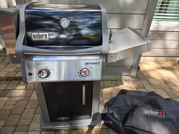 Weber 2 burner grill. Good condition. Comes with LP tank, rotisserie attachment, smoking supplies, and cover. In very good condition.