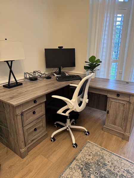 Sauder L-Shaped executive desk - long side is 65" L x 30" Wide