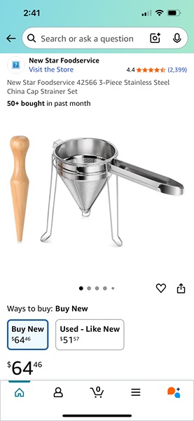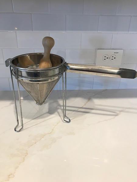 Chinois for straining sauces. Comes with stand and wood tool. New sells for $65. Great condition.