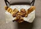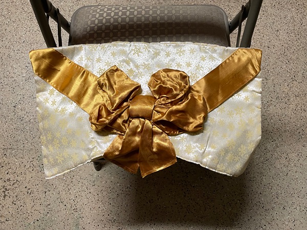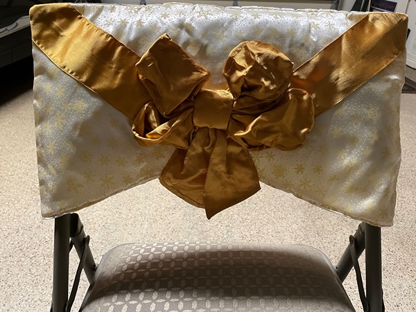 Beautiful chair covers with gold bows. Price is for a set of twent four. Cash. Pick up is I45 and 242 area.