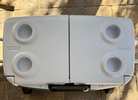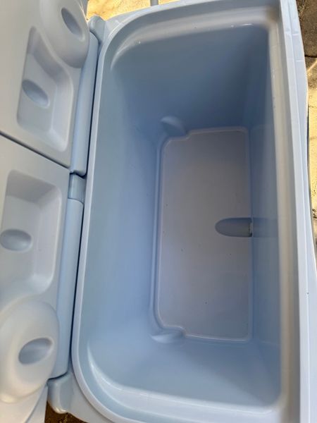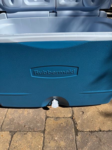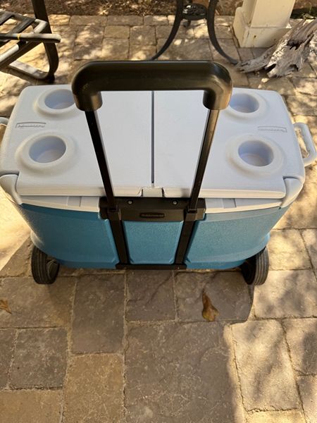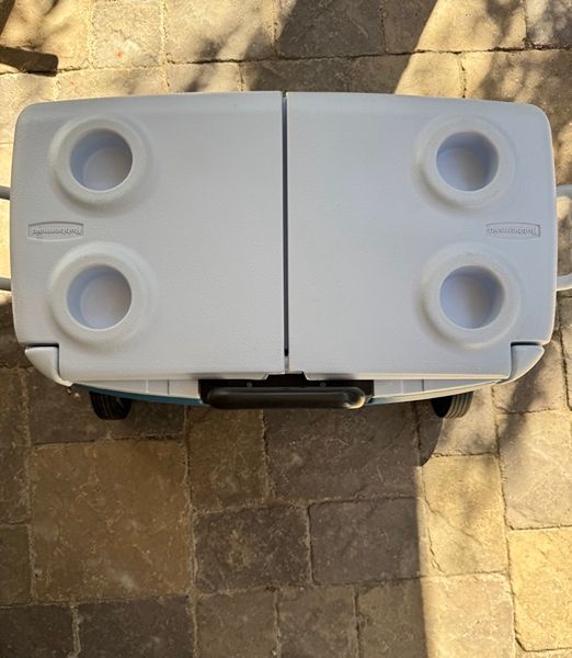 Keep your beverages and food cool with the Rubbermaid Wheeled Cooler. This cooler has side swing handles with comfort grip for easily carrying it. There is a durable retractable metal and plastic pull handle that allows a firm grip to hold while you drag the cooler. It has rugged wheels for easy mobility over multiple surfaces. The cooler has built-in cup holders. There is hinged split lid that creates easy access to cooler contents without letting all the cold air out. There is front drain for easy draining of liquids.