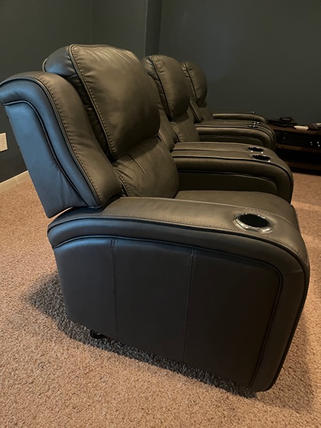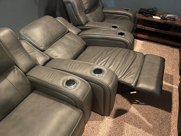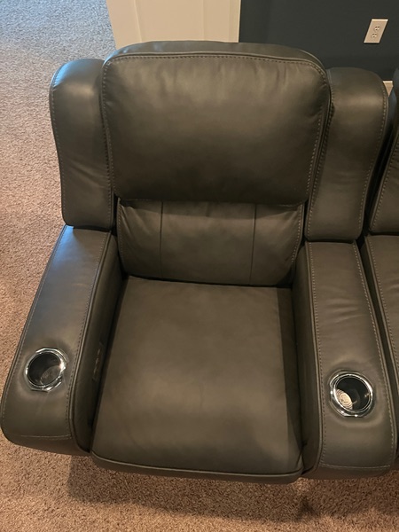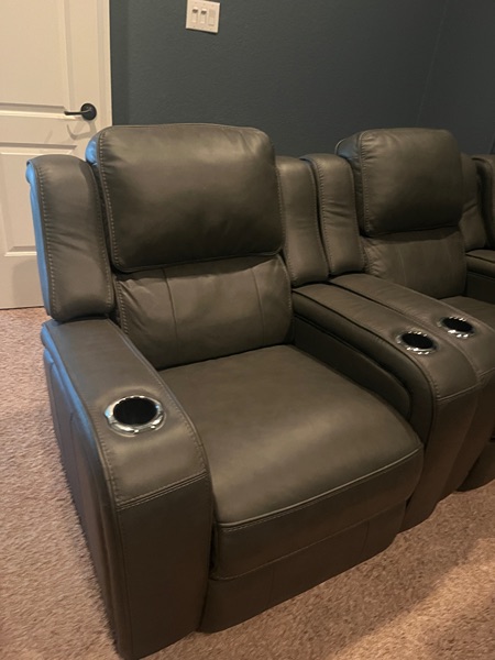 Beautiful blue-grey leather recliners with electric controls on feet and head. Two cupholders. Electronics all work perfectly. Only 3 years old but moving and not enough room at the new place. Price is $600 each. I have two chairs available.