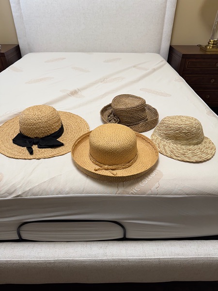 I have 4 designer straw hats all in excellent condition and only occasionally used. Cleaning closets and found these. Great deal 20.00 for all four!