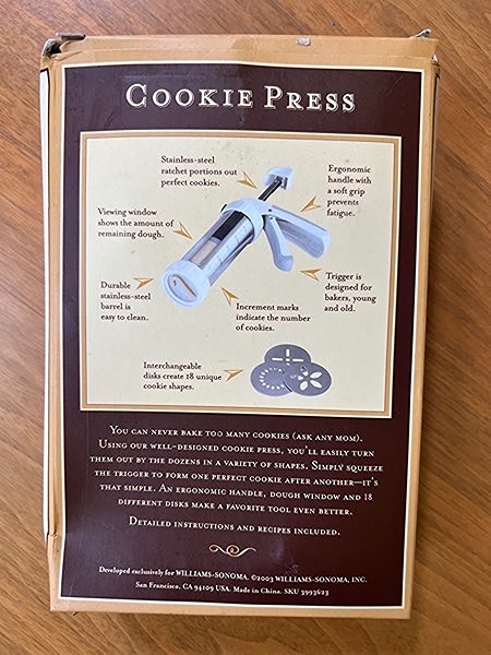 Quickly create spritz cookies or savory canapés in charming shapes for the holidays and beyond. Just fill the barrel of our press with dough and insert one of the discs. (Similar item shown in last pic.)…$25 firm