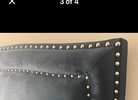 Transform your bedroom or guest suite with this luxurious navy velvet bedframe featuring stunning silver nailhead trim and a subtly curved headboard that exudes sophistication and modern class.