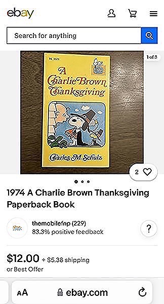 Charlie Brown Thanksgiving Book 1974