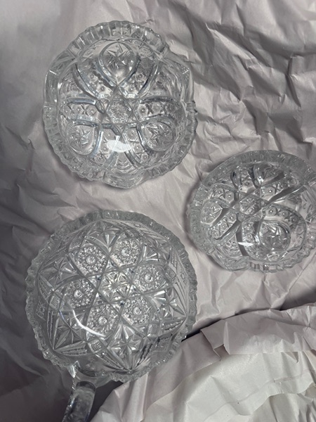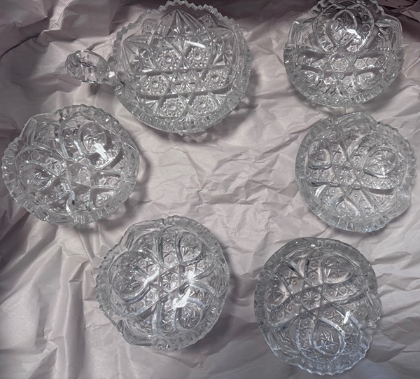 • 5–6 small round scalloped candy/nut/relish bowls (about 4–5 inches across).