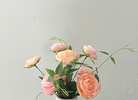 Elegant white vase with faux roses and other greenery. 16” tall…$25 firm
