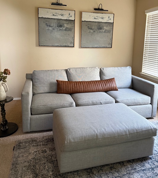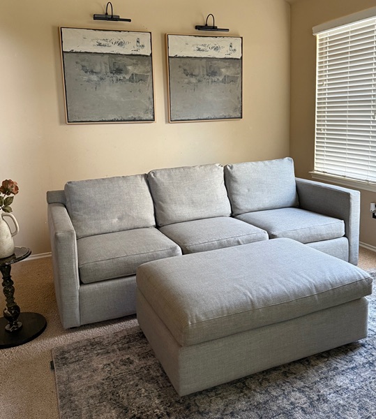 Fabric name “Ash”. Easy to clean, super durable and machine friendly.
